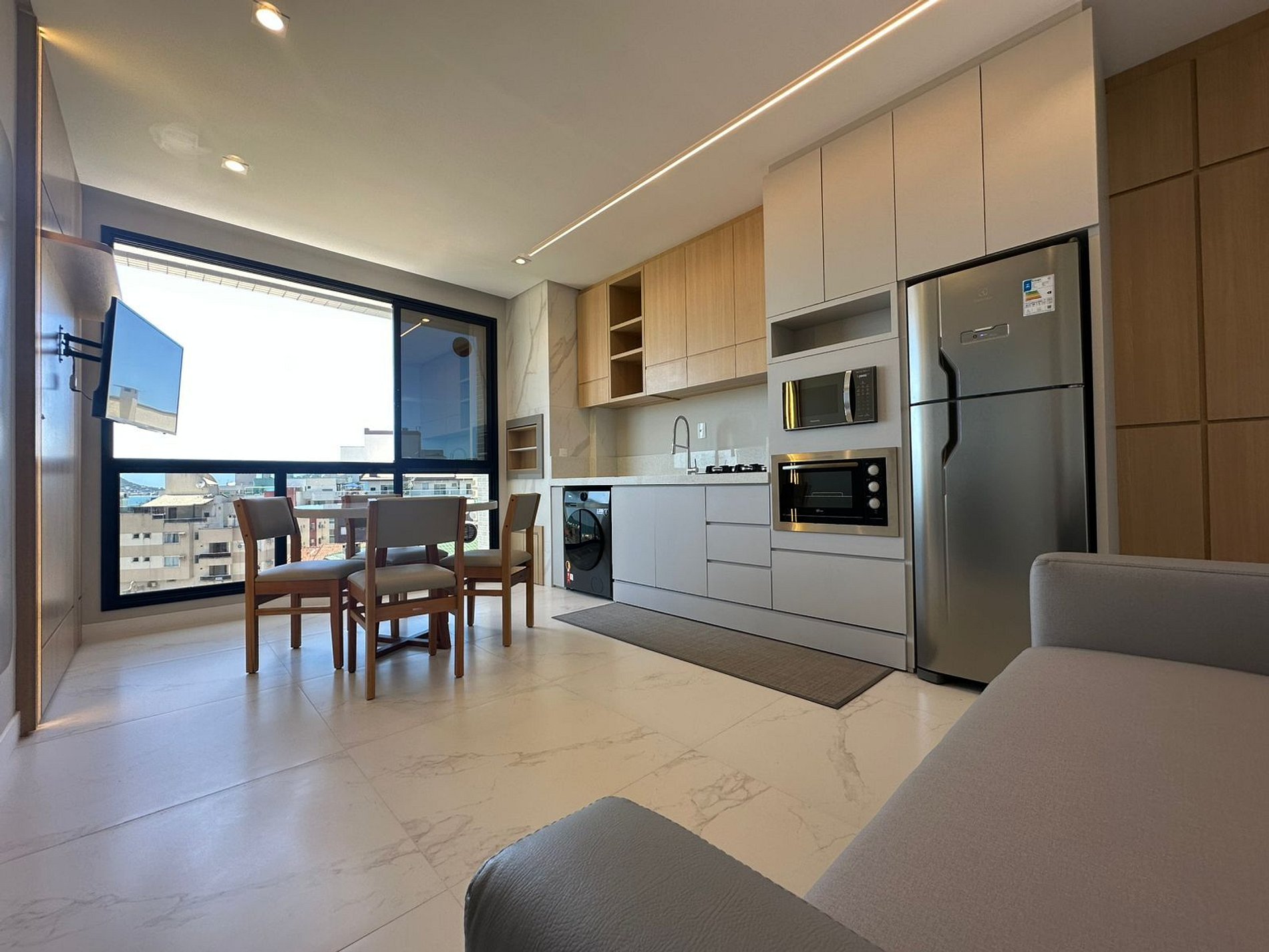 Nosso apartamento foi cuidadosamente projetado para oferecer conforto e praticidade. Com ar-condicionado, cama queen e sofá-cama excelente, garantimos noites tranquilas e relaxantes. A cozinha totalmente equipada, com utensílios modernos, proporciona praticidade para quem deseja preparar suas próprias refeições. A churrasqueira privativa oferece momentos de lazer com total privacidade. Além disso, a proximidade com a praia e a excelente infraestrutura ao redor tornam o lugar perfeito para quem busca comodidade e bem-estar.