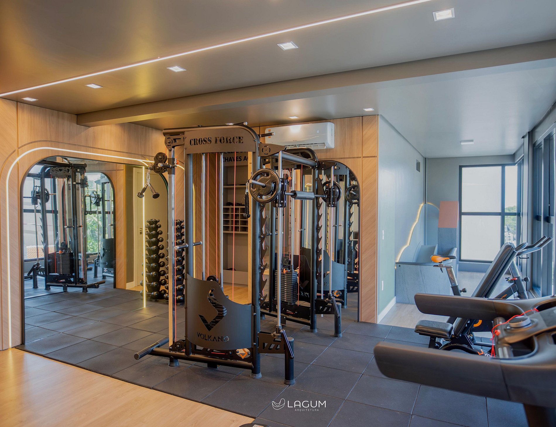 • Academia Completa: Com esteira, bicicleta ergométrica, CROSS force e pesos.